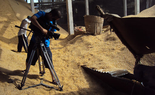 Lúa từ đồng sẽ được gặt lên và chở về nhà máy để tuốt lúa