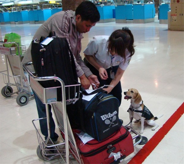Sử dụng chó nghiệp vụ để trợ giúp kiểm tra, phát hiện các loại thực phẩm cấm ngay tại sân bay
