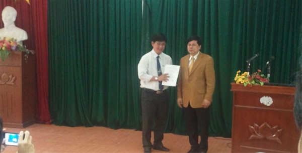 Kết thúc hội nghị TS. Đỗ Hữu Hào chủ tịch Hội Cơ điện tử Việt Nam đã trao Quyết định tổ chức Hội nghị Cơ điện tử lần 7 năm 2014 cho trường Đại học Lạc Hồng.