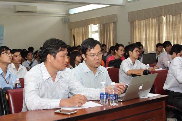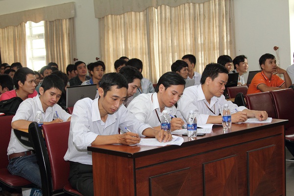Các tân sinh viên chăm chú lắng nghe các "tiền bối" trình bày ý tưởng