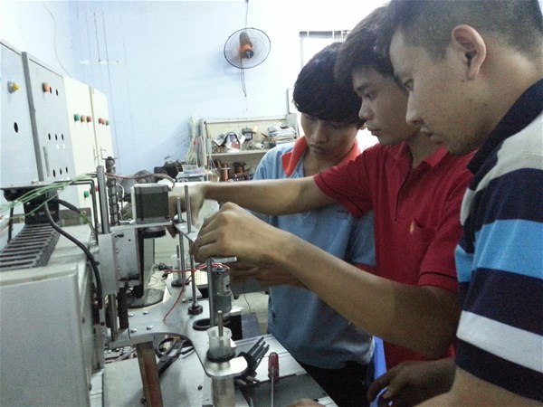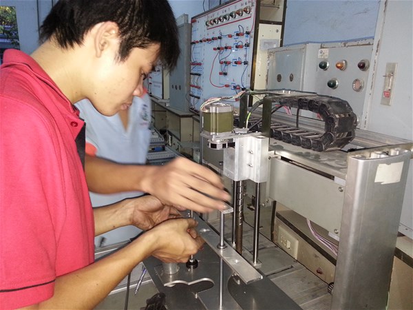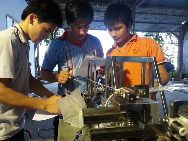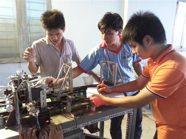 Do thời gian nộp đề tài gần kề nên nhóm sinh viên và giáo viên thực hiện đề tài đang trong công đoạn gấp rút hoàn thành tại khu vực xưởng của khoa Cơ Điện – Điện Tử ở cơ sở 1. Cả nhóm nhiều khi phải làm việc đến 1 hoặc 2 giờ sáng, bất kể thứ 7 và chủ nhật,  về đến nhà là mệt nhoài, lăn ra ngủ và sáng hôm sau lại tiếp tục hành trình.