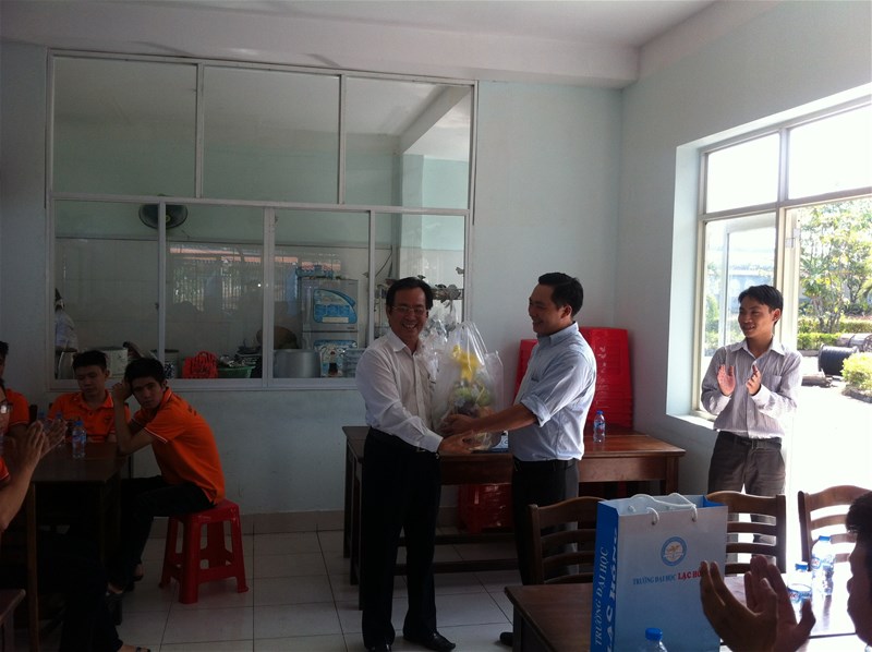 Hình 3. Thầy Nguyễn Duy Thạch - Đại diện khoa Cơ điện – Điện tử tặng quà lưu niệm.