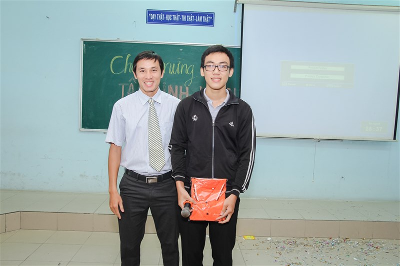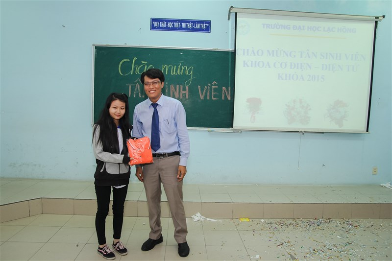Đặc biệt, việc giới thiệu về khoa được lồng ghép vào những câu hỏi đố vui có thưởng đã nhận được sự hưởng ứng nhiệt tình của các bạn Tân sinh viên tạo không khí buổi gặp gỡ thêm sôi động. Cuối chương trình thầy trưởng khoa TS. Nguyễn Vũ Quỳnh đã bốc thăm chọn ra bạn may mắn nhất chương trình và trao phần quà thay cho lời chúc tốt đẹp đến các bạn trong năm học mới.
