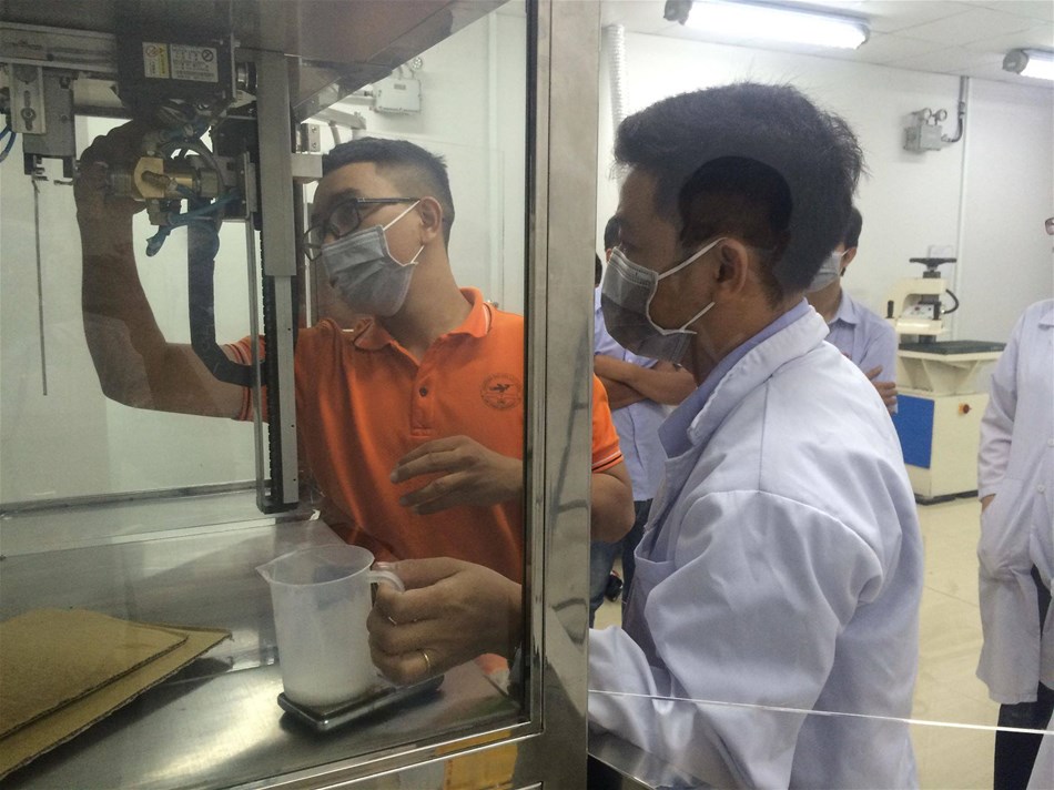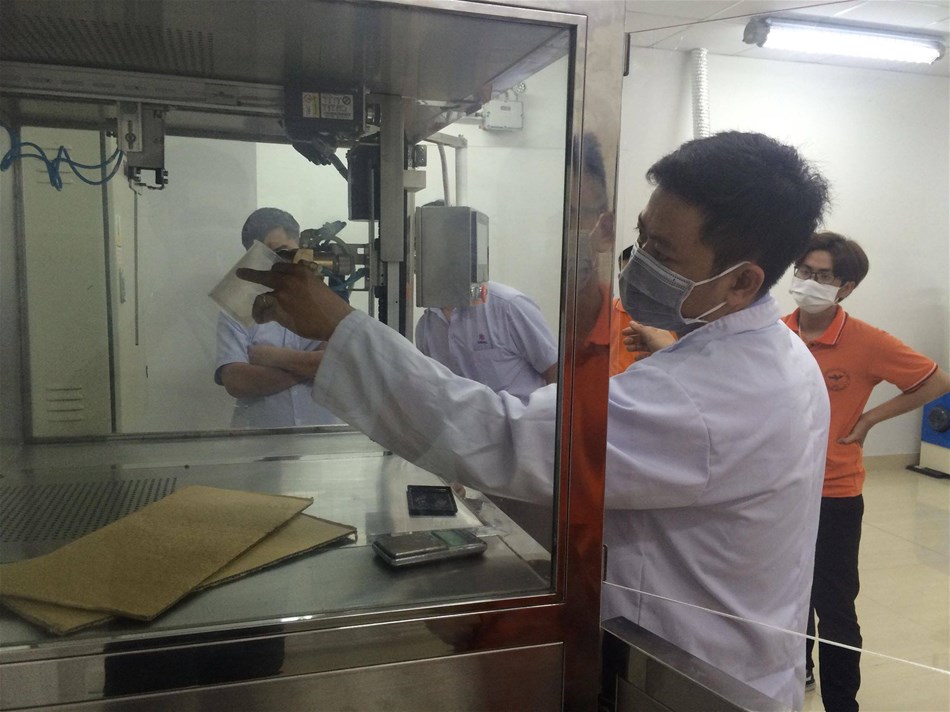 Bộ phận QA của công ty TNHH NAN PAO MATERIALS VIỆT NAM chạy thử máy