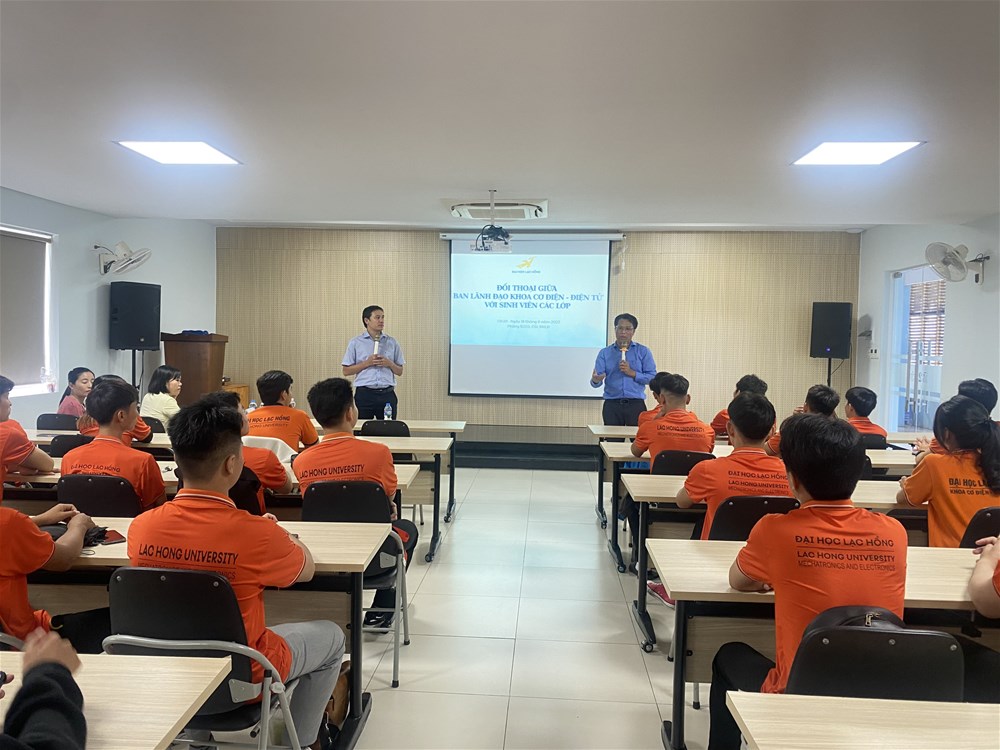 Chiều ngày 18/8/2023, khoa Cơ điện – Điện tử tổ chức buổi gặp mặt và đối thoại với sinh viên năm học 2023-2024. Đây là hoạt động thường niên nhằm giải đáp các ý kiến, kiến nghị của sinh viên cũng như hỗ trợ, cung cấp các thông tin liên quan đến sinh viên để nâng cao chất lượng dạy và học trong Khoa.