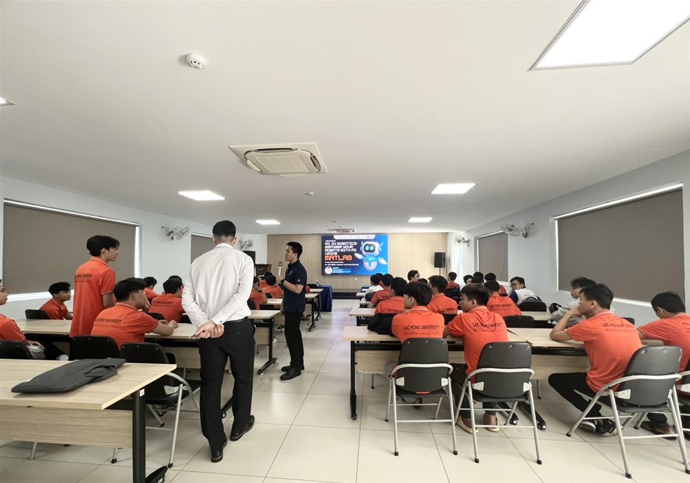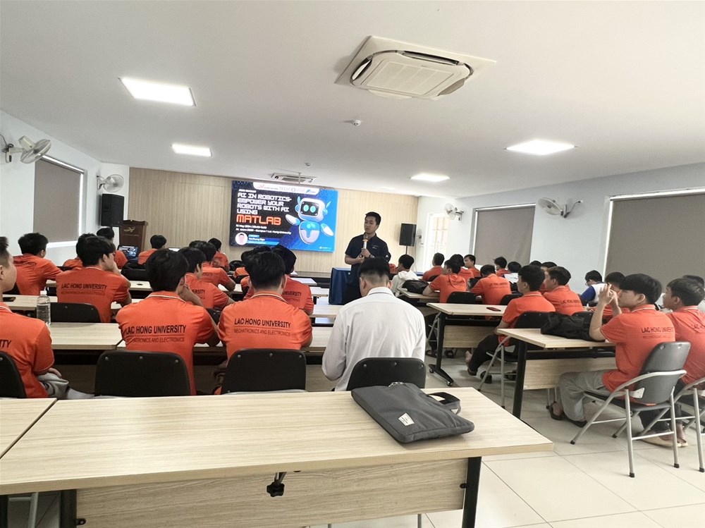 Sáng ngày 16/5/2024 Trường Đại học Lạc Hồng phối hợp cùng Công ty TNHH Ascendas Systems đã tổ chức Seminar "AI in Robotics empower your robots with AI using Matlab" nhằm hỗ trợ sinh viên trong việc phát triển các hệ thống robot thông minh và linh hoạt. Diễn giả seminar là anh Ngô Đức Thắng Kỹ sư Ứng dụng tại Công ty Ascendas.