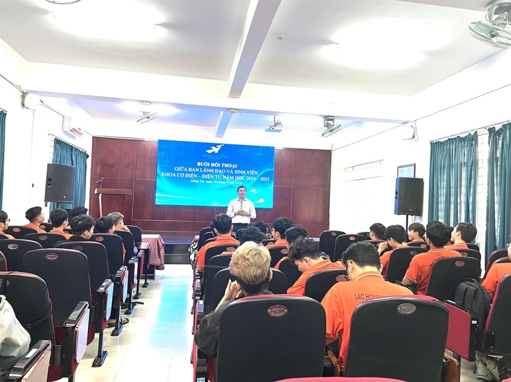 Chiều ngày 20/9/2024, khoa Cơ điện – Điện tử tổ chức buổi đối thoại Ban Lãnh đạo Khoa với sinh viên năm học 2024 - 2025. Đây là hoạt động thường niên nhằm giải đáp các ý kiến, kiến nghị của sinh viên cũng như hỗ trợ, cung cấp các thông tin liên quan đến sinh viên để nâng cao chất lượng dạy và học trong Khoa.
