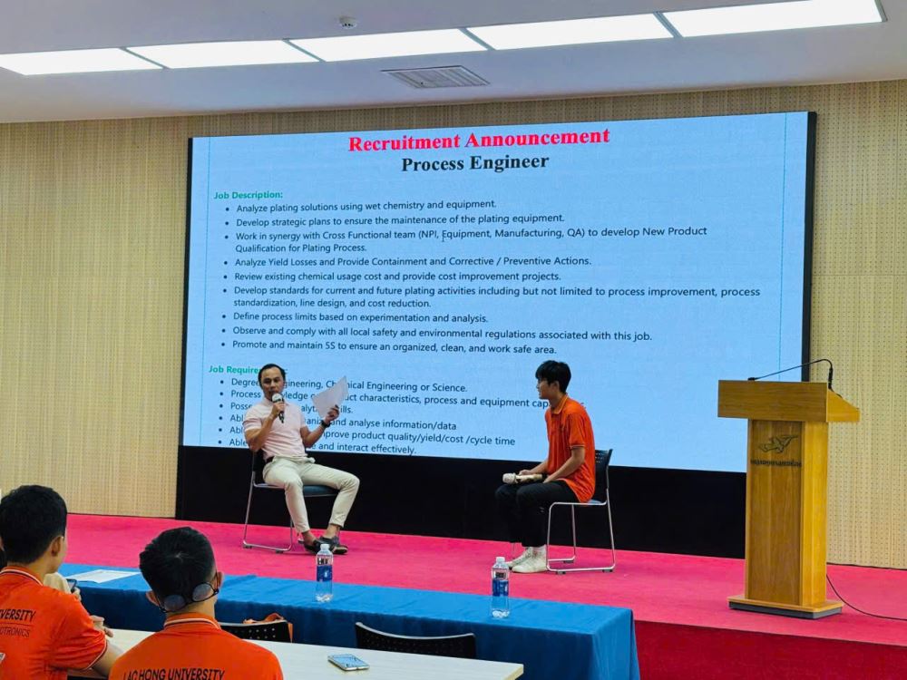 Hội thảo đã tổ chức thành công tại Hội trường A301, cơ sở 1 Trường Đại học Lạc Hồng với sự có mặt của ThS. Lê Hoàng Anh – Phó Trưởng khoa Cơ điện – Điện tử, Ms. Phạm Thị Kim Hoàng – Trưởng phòng Nhân sự tại Công ty TNHH On Semiconductor Việt Nam cùng anh chị cộng sự đi cùng, đồng thời với sự tham gia của 150 sinh viên năm cuối các ngành thuộc Khoa Cơ điện – Điện tử.