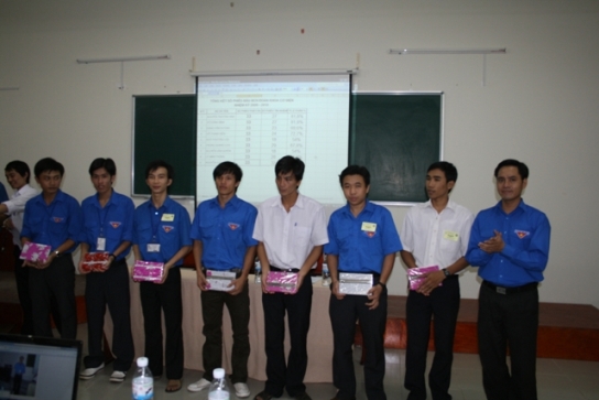 Đồng chí Lê Sơn Quang trao giấy khen của Đoàn Trường cho các đồng chí đoàn viên có đóng góp tích cực trong phong trào