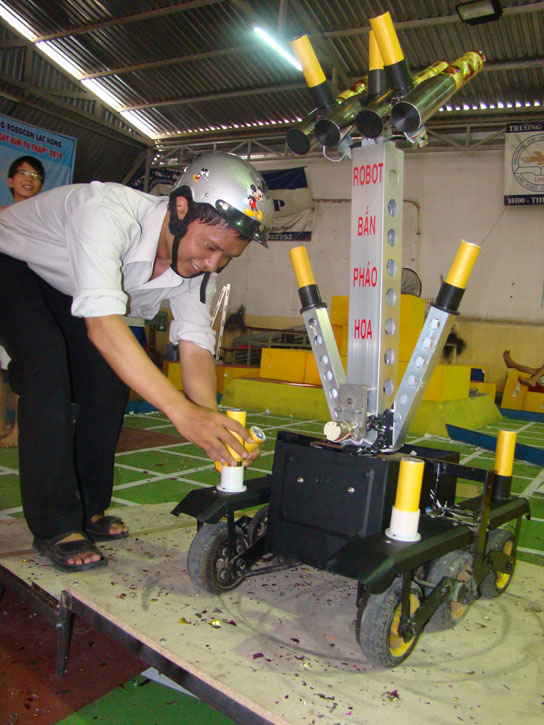 Sau khi bàn bạc, chỉ mất khoảng một tuần bắt tay vào nghiên cứu, hai thạc sĩ đã cho ra đời sản phẩm robot bắn pháo hoa. Robot này có khả năng vượt chướng ngại vật, di chuyển trên những địa hình lồi lõm phức tạp, có thể leo bậc thang để trình diễn những màn bắn pháo hoa tuyệt đẹp dưới sự điều khiển của đạo diễn.