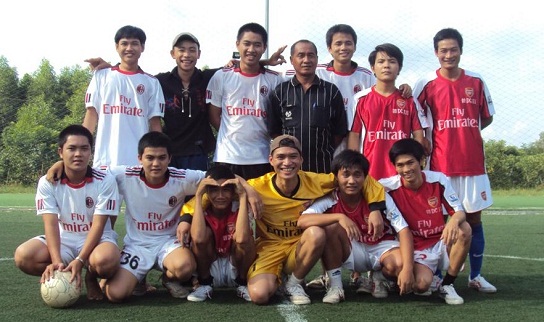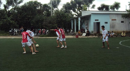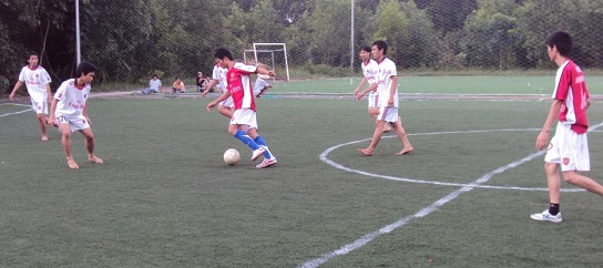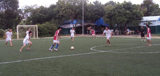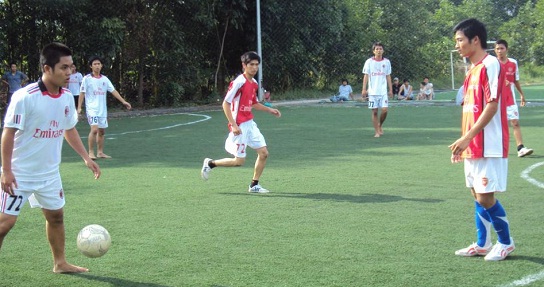 . Đội tuyển 08CD111 xuất quân với đội hình áo trắng và 09DC111 áo đỏ