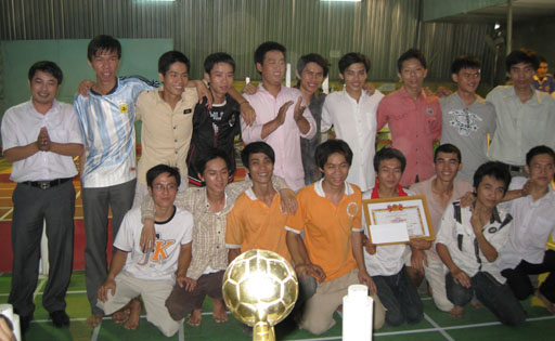 Thầy TS. Trần Hành - Hiệu Trưởng nhà trường trao bằng khen và cúp cho đội vô địch