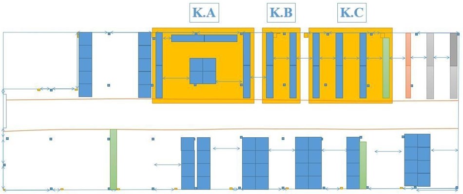 Đeo găng tay, chúng tôi quyết định định hình lại sơ đồ nhà kho để thiết kế ra các kiểu sắp xếp kệ và pallet sao cho việc sắp xếp nhập xuất và kiểm kê dễ dàng.
