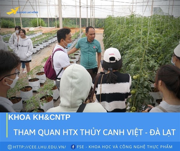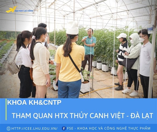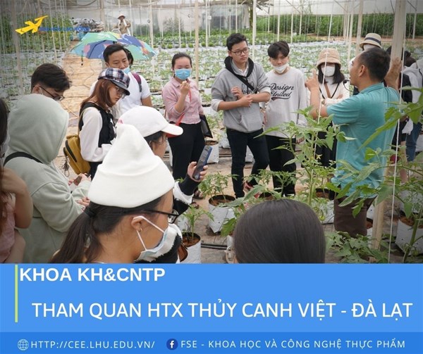 Tiếp tục chuỗi hoạt động sinh viên kiến tập các công ty sản xuất lĩnh vực thực phẩm. Ngày 25.5.2022 Khoa KH&CNTP tổ chức buổi tham quan Hợp tác xã Thủy Canh Việt tại TP. Đà Lạt.
