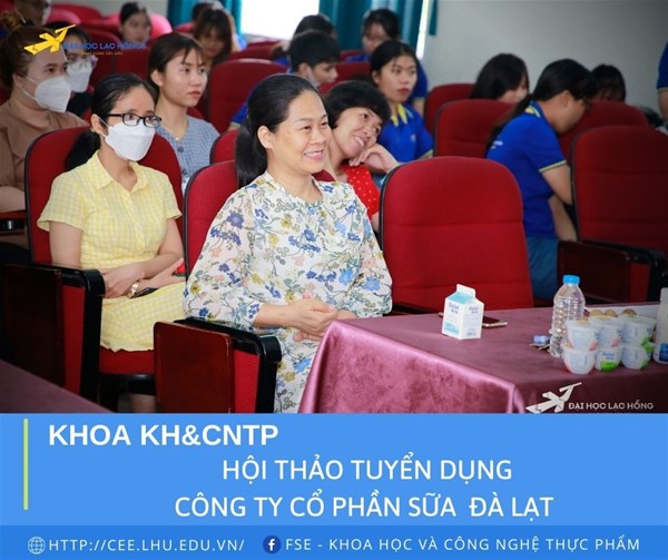 Để nâng cao chất lượng đội ngũ nhân sự, ngày 17 tháng 6 năm 2022 công ty cổ phần sữa Đà Lạt đã đến làm việc, trao đổi cùng lãnh đạo Khoa KH&CNTP về việc tuyển dụng sinh viên ra trường của Khoa cho nhà máy mới mở rộng và tổ chức Hội thảo tuyển dụng nhân sự ngành Công nghệ thực phẩm.