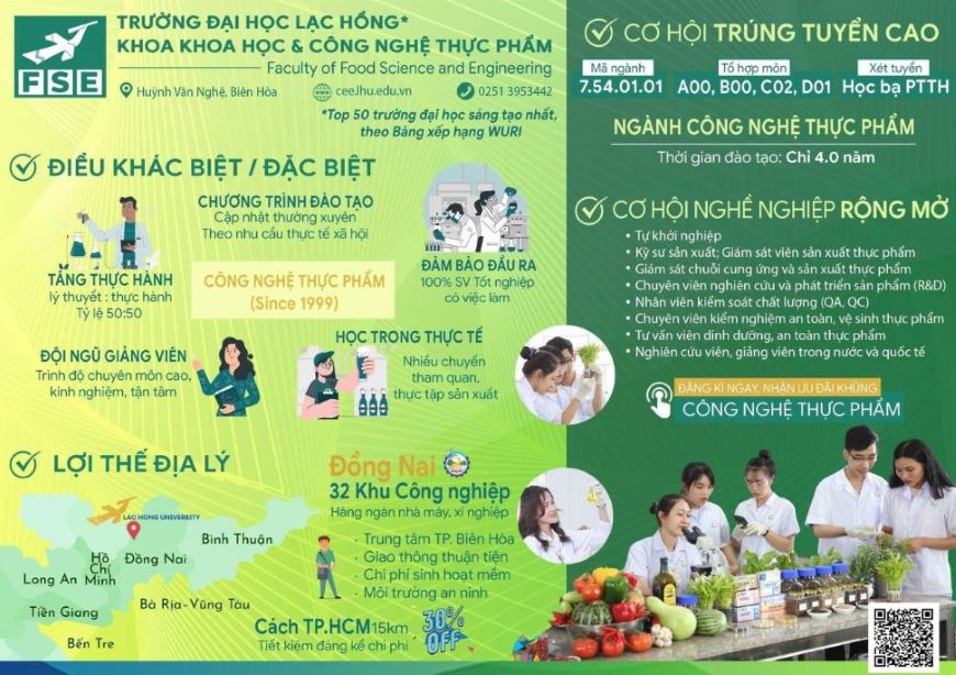 Ngành Công nghệ thực phẩm; An toàn Sức khỏe và Môi trường - Đại học Lạc Hồng