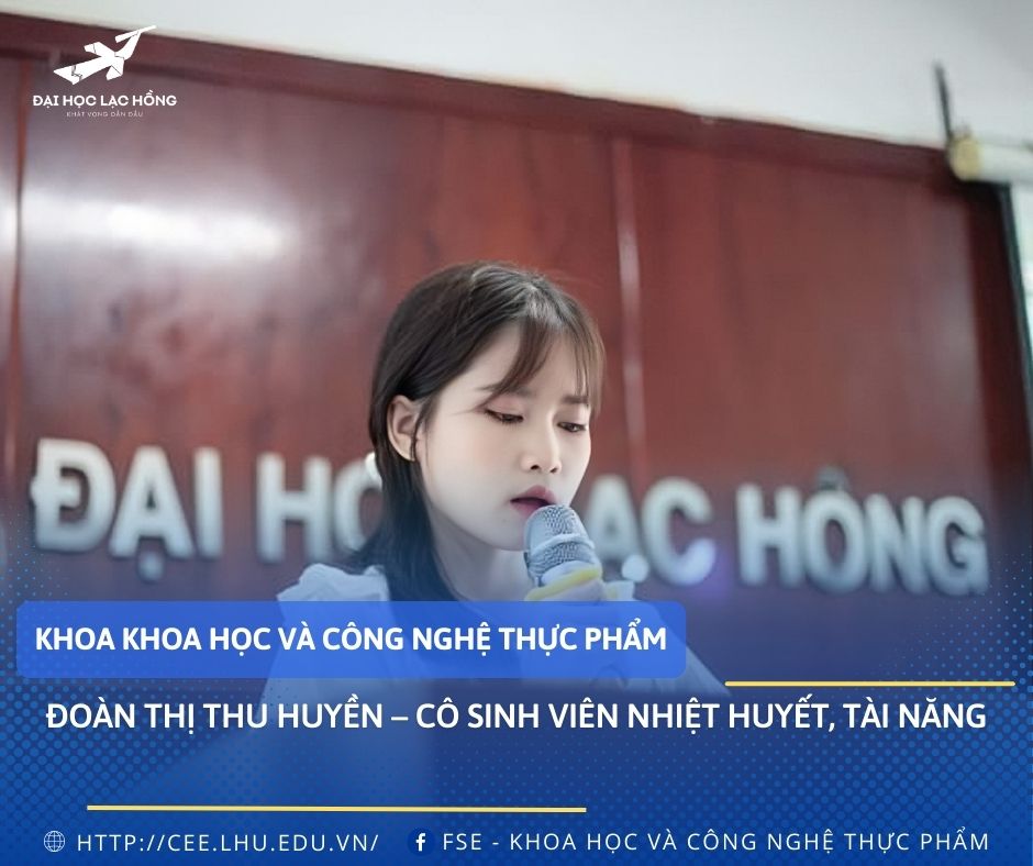 Nhiệt huyết, cống hiến, trách nhiệm, sáng tạo là những phẩm chất khi nói về Đoàn Thị Thu Huyền sinh viên năm 4 khoa KH&CN Thực phẩm, trường Đại học Lạc Hồng.
