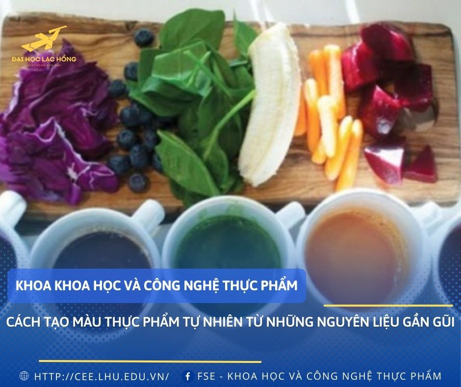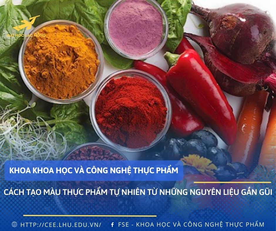 Cách tạo màu thực phẩm tự nhiên tiến hành như thế nào? Trên thực tế việc tạo màu thực phẩm không hề khó khăn như bạn vẫn nghĩ đâu. Đôi khi chỉ với những nguyên liệu gần gũi trong gian bếp, chúng ta cũng có thể tạo được thành phẩm ưng ý. Cùng khoa Khoa học và Công nghệ thực phẩm tìm hiểu về màu tự nhiên nhé.