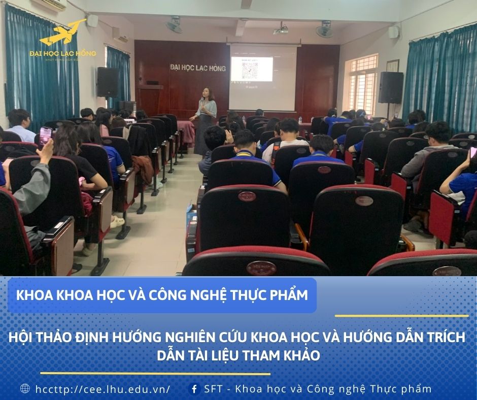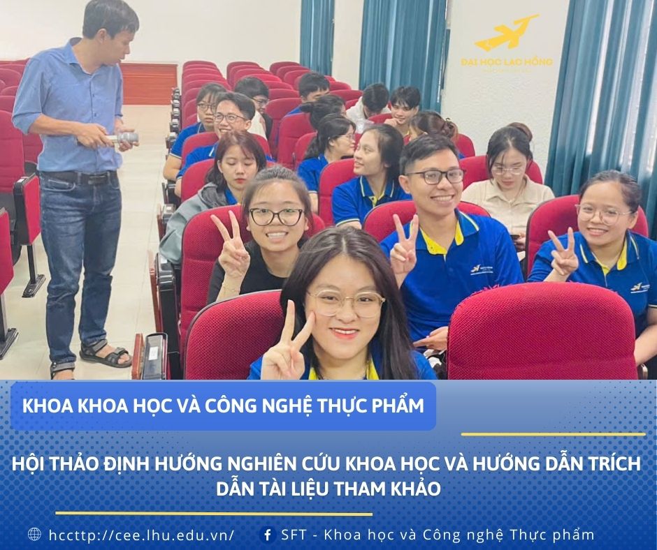 Với mục đích giới thiệu đến sinh viên các khóa đặc biệt là sinh viên khóa mới về Câu lạc bộ Nghiên cứu khoa học của Khoa cũng như các hoạt động hỗ trợ sinh viên trong quá trình làm nghiên cứu khoa học. Ngày 24/08/2024 Khoa Khoa học và Công nghệ thực phẩm đã tổ chức hội thảo '' Định hướng nghiên cứu khoa học và Hướng dẫn trích dẫn tài liệu tham khảo” tại phòng I 209, Cơ sở 6, ĐH Lạc Hồng.