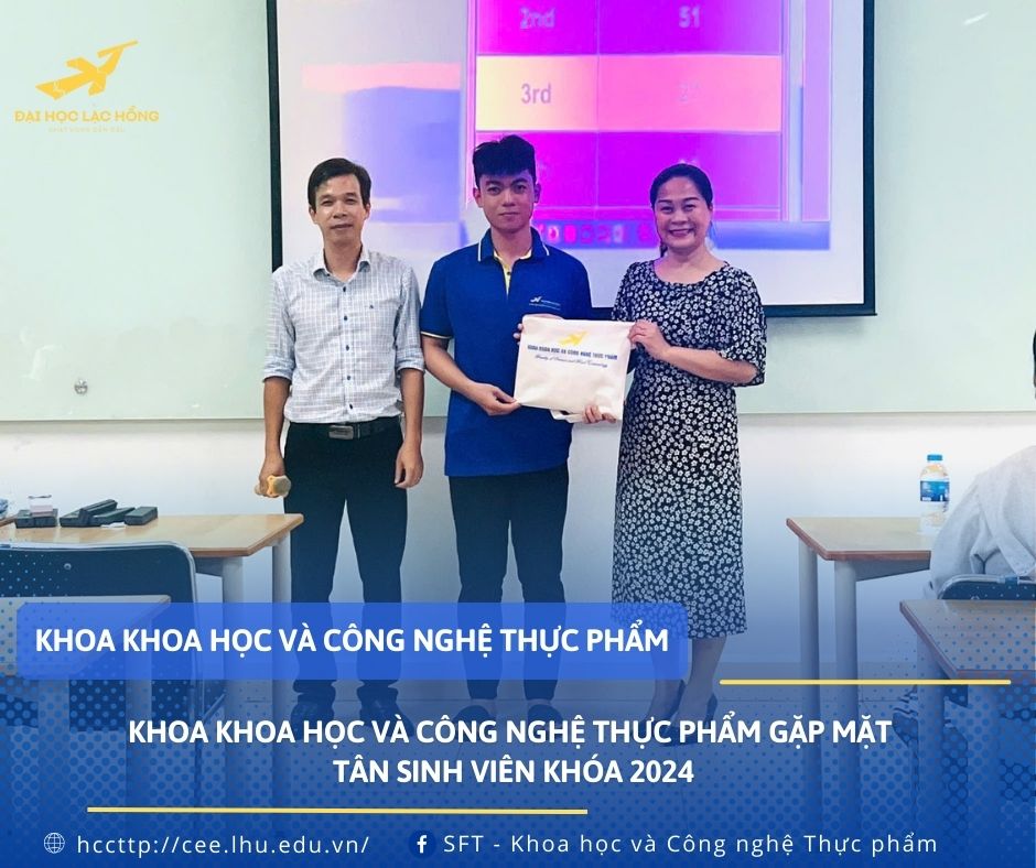Chiều ngày 16/9/2024 tại phòng D404, Cơ sở 2, Trường Đại học Lạc Hồng, Khoa Khoa học & CN Thực Phẩm đã tổ chức buổi gặp mặt Tân sinh viên Khóa 2024. Với nhiều nội dung chia sẻ bổ ích của Lãnh đạo Khoa và các Thầy, Cô chương trình đã để lại nhiều ấn tượng khó quên đối với các bạn sinh viên năm nhất.