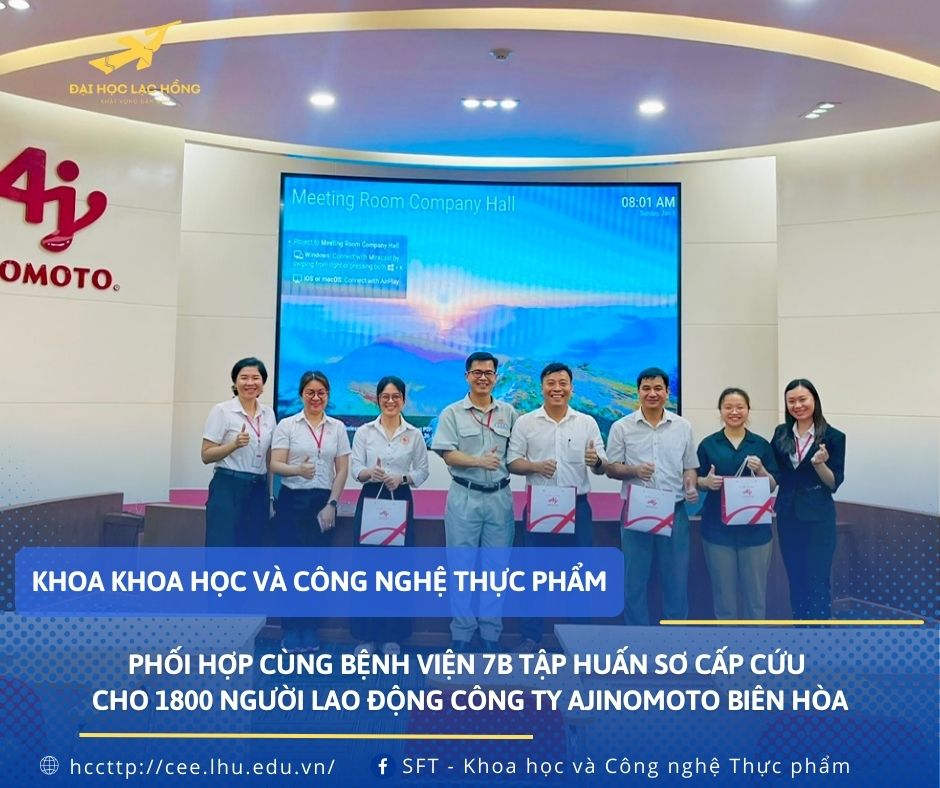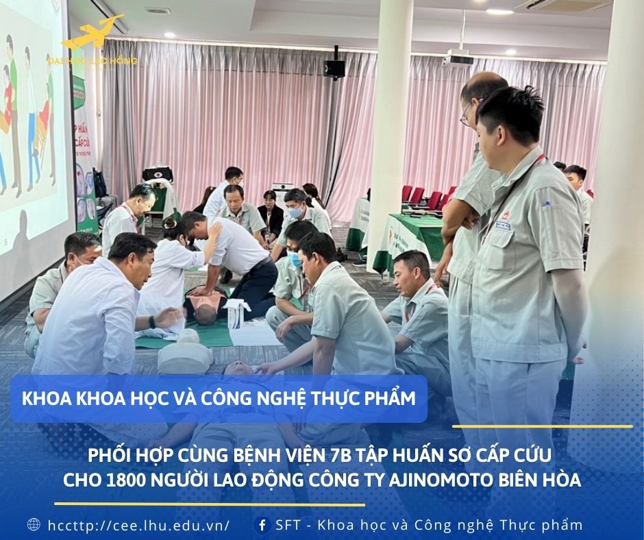 Hướng đến công tác phục vụ cộng đồng năm 2024. Khoa KH&CNTP đã phối hợp cùng bệnh viện 7B tổ chức chương trình đào tạo và tập huấn về sơ cấp cứu, giúp nâng cao kỹ năng ứng phó tình huống khẩn cấp, bảo vệ sức khỏe và an toàn cho 1800 người lao động công ty Ajinomoto Biên Hòa từ tháng 8 đến tháng 10 năm 2024.