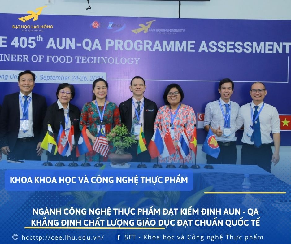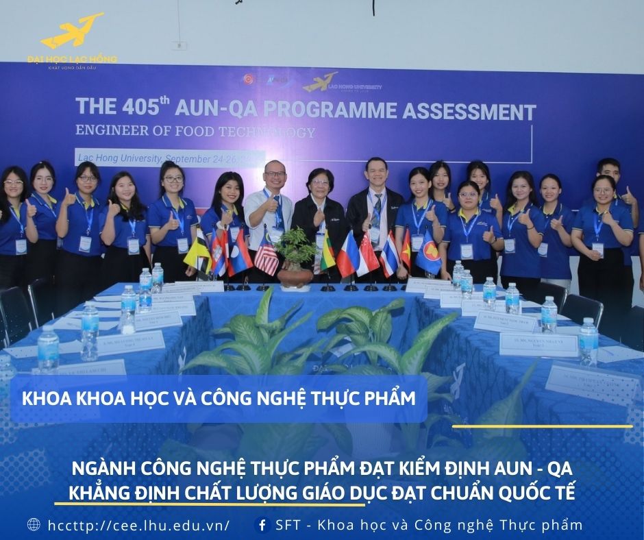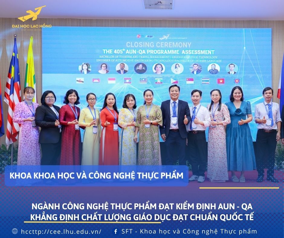Chứng nhận AUN - QA là minh chứng rõ ràng cho sự cam kết của trường Đại học Lạc Hồng trong việc mang đến cho sinh viên những kiến thức vững vàng, kỹ năng thực tế và sự chuẩn bị tốt nhất để có thể làm việc trong môi trường quốc tế. Chương trình đào tạo ngành Công nghệ thực phẩm tại Đại học Lạc Hồng được xây dựng với mục tiêu cung cấp cho sinh viên một nền tảng kiến thức sâu rộng về khoa học thực phẩm, cách chọn nguyên liệu, quy trình sản xuất, bảo quản, phân tích thực phẩm cho đến các công nghệ chế biến thực phẩm hiện đại. Ngoài kiến thức chuyên môn, sinh viên còn được trang bị những kỹ năng mềm cần thiết như: kỹ năng làm việc nhóm, kỹ năng giao tiếp, kỹ năng giải quyết vấn đề… để giúp sinh viên tự tin đáp ứng được các yêu cầu doanh nghiệp .