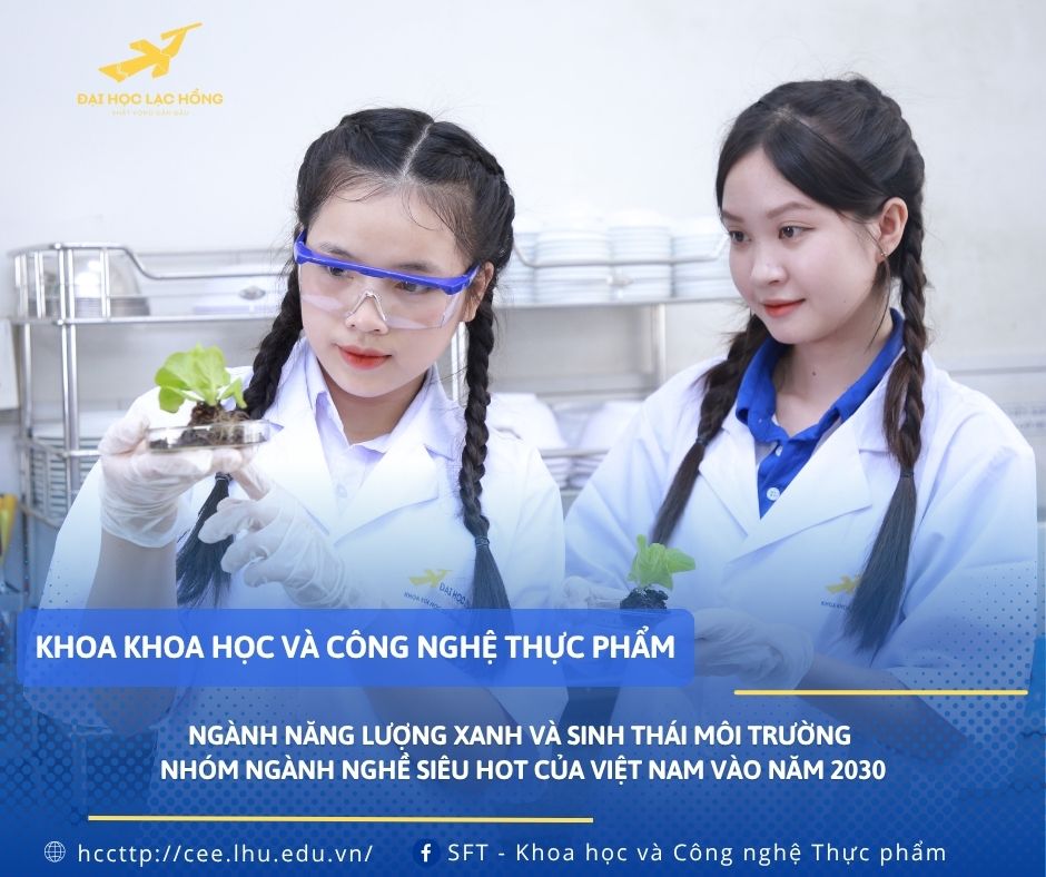 Năm học 2025 – 2026 Khoa Khoa học và Công nghệ thực phẩm, Đại học Lạc Hồng mở chuyên ngành Năng lượng xanh và Sinh thái môi trường nhằm đáp ứng nhu cầu của xã hội. Với chương trình đào tạo bán sát thực tế, luôn cải tiến và có sự đồng hành của các doanh nghiệp trong việc góp ý chương trình đào tạo, tạo điều kiện cho sinh viên tham quan thực tế cũng như thực tập và hỗ trợ việc làm sau khi tốt nghiệp sẽ cung cấp nguồn nhân lực có kiến thức vững vàng, thái độ tích cực để đáp ứng nhu cầu tuyển dụng của các doanh nghiệp.