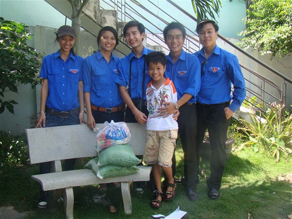 H07: Các bạn Đoàn viên Thanh niên chụp hình lưu niệm cùng nạn nhân.