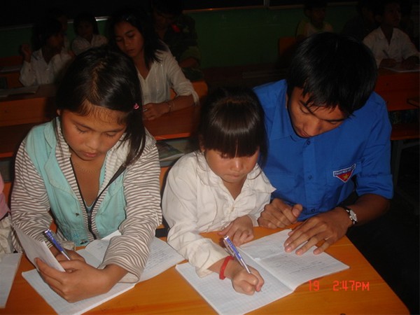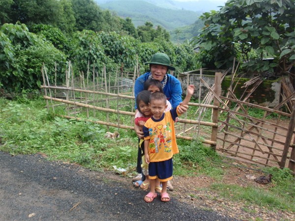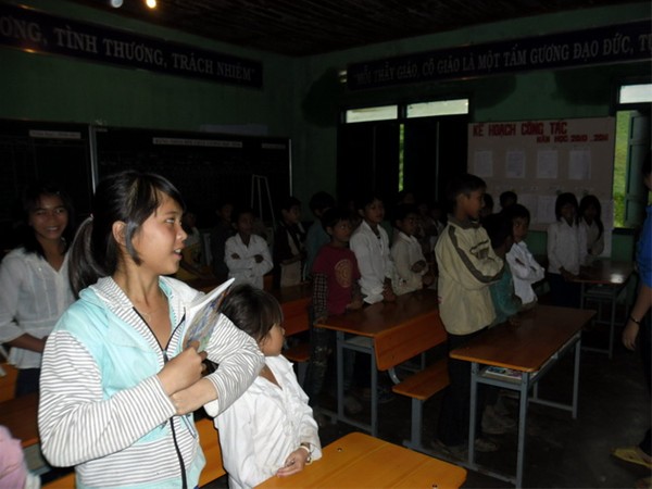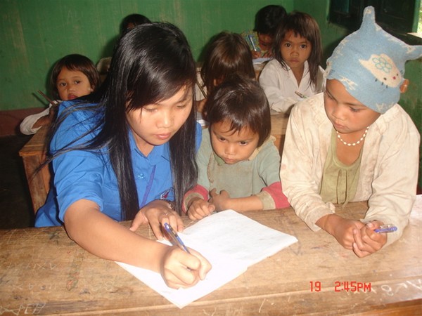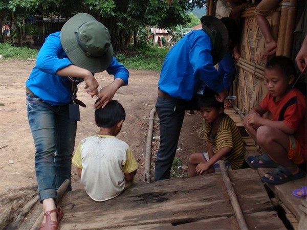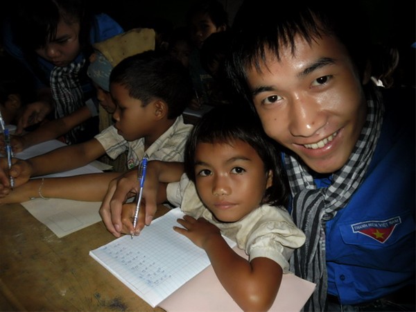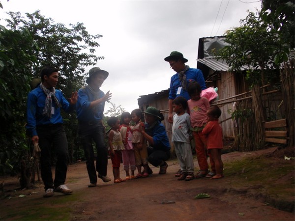 Hình ảnh thân thiện thường gặp giữa thanh niên tình nguyện với các em thiếu nhi bản địa