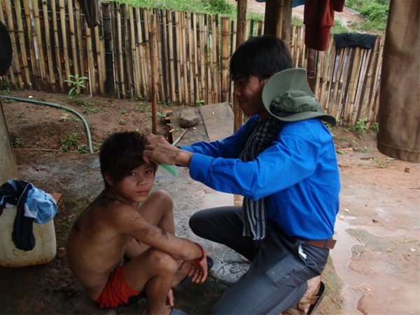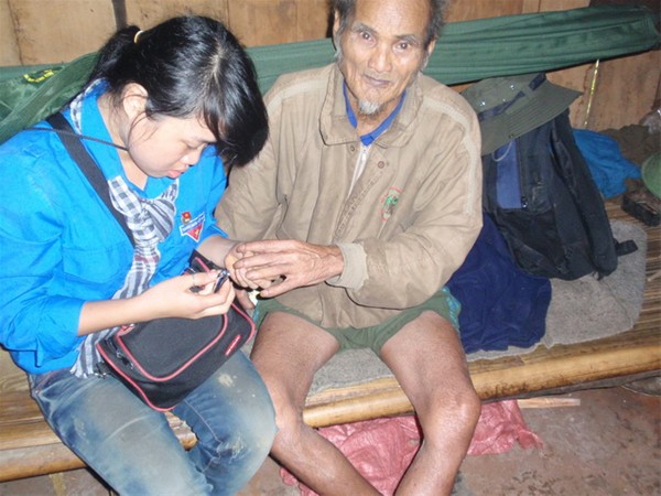 Cắt móng tay cho các cụ già trong làng