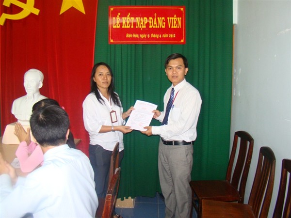 Đ/c Võ Hồng Bảo Châu trao quyết định kết nạp đảng cho Nguyễn Phát Nhựt