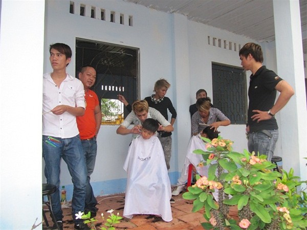 Ngoài việc ăn uống, vui chơi các bạn còn được các anh chị là thợ cắt tóc xuất sắc cắt tóc cho các em.
