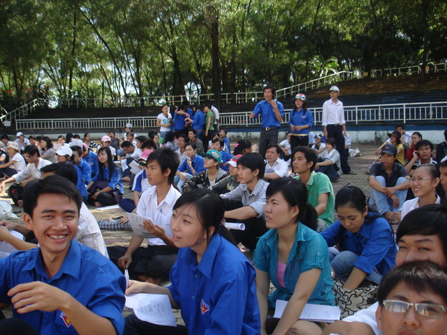 Hình 3: Các bạn sinh viên, Đoàn viên đang chuẩn bị chơi trò chơi tập thể