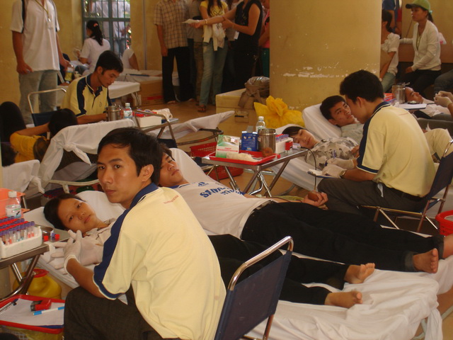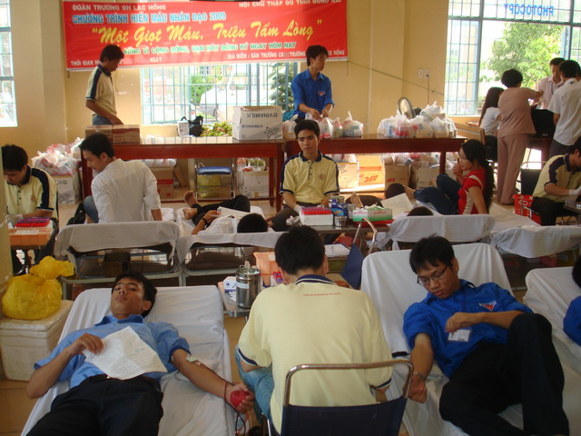 Đúng 7h00 ngày 26/3/2009, khu vực nội trú của nhà truờng đã nhộn nhịp hẳn lên với đông đảo các bạn sinh viên đến tham gia hiến máu. Đây là một nghĩa cử cao đẹp của các bạn sinh viên, hiến máu cứu người, giúp đỡ nhau trong lúc gặp khó khăn họan nạn. Tham gia chương trình hiến máu còn có nhiều thầy cô là nhân viên trường cũng tham gia chương trình hiến máu ngày 26/3/2009 Thầy Châu Quang Trạng - Trưởng phòng Quản trị Thiết bị, Đ/c Lê Sơn Quang - Chủ tịch Hội sinh viên trường, Cô Nguyễn Thu Hiền - Giảng viên khoa Quản trị Kinh tế Quốc tế...