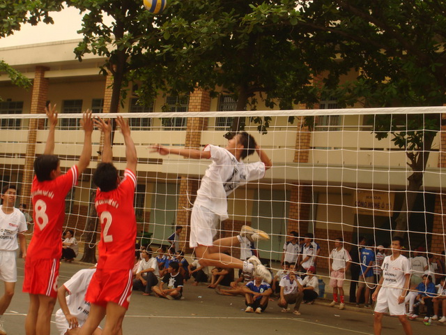 Hình 8: Trường ĐH Lạc Hồng(áo trắng) nhận giải nhất môn bóng chuyền