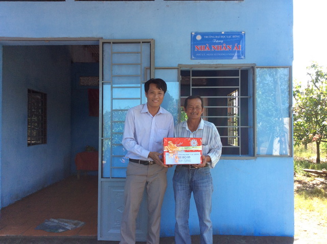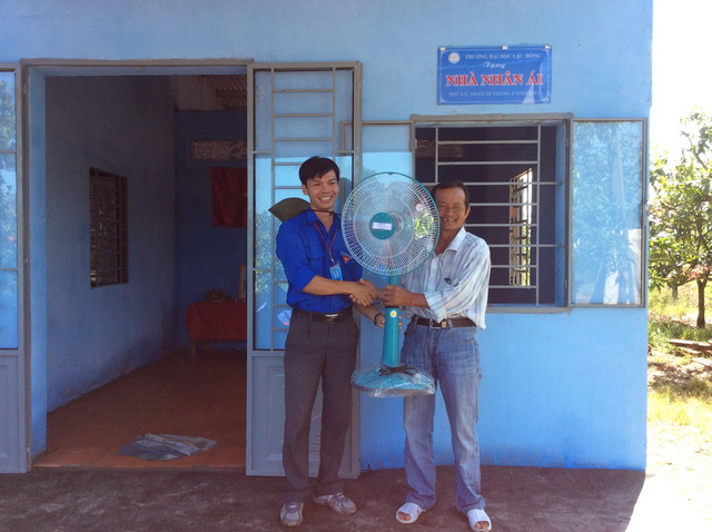 Sáng ngày 02/8/2015, căn nhà nhân ái được chính thức được trao tặng cho ông Tốt. Tham gia buổi lễ trao tặng nhà, về phía Đảng ủy khối các cơ quan tỉnh Đồng Nai có Đ/c Nguyễn Minh Thanh – UV. BTV, Trưởng Ban Tuyên giáo Đảng ủy khối các Cơ quan tỉnh; về phía Đảng ủy có Đ/c Nguyễn Trùng Phương – Bí thư Đảng ủy nhà trường; đảng viên các chi bộ 5, chi bộ 6; về phía Đoàn – Hội Sinh viên trường có Đ/c Lê Sơn Quang – Bí thư Đoàn trường, Đ/c Trần Tiến – Chủ tịch Hội Sinh viên trường; lãnh đạo huyện ủy, UBND huyện Vĩnh Cửu; lãnh đạo Đảng ủy, UBND xã Phú Lý; cùng với 30 sinh viên tình nguyện hiện đang công tác Mùa hè xanh tại xã Phú Lý.
