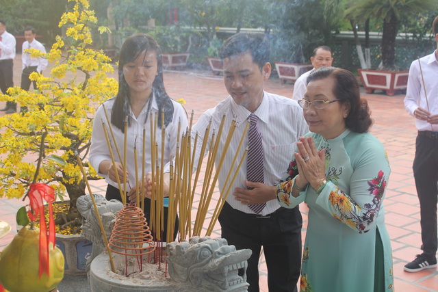 Hình 3: Đoàn đại biểu trường ĐH Lạc Hồng thắp hương tri ân các bậc tiền nhân
