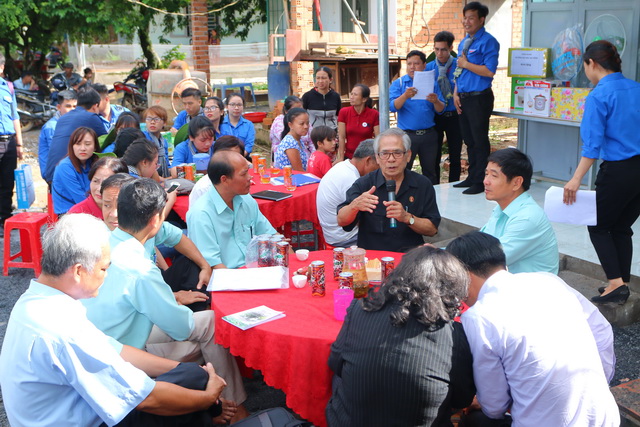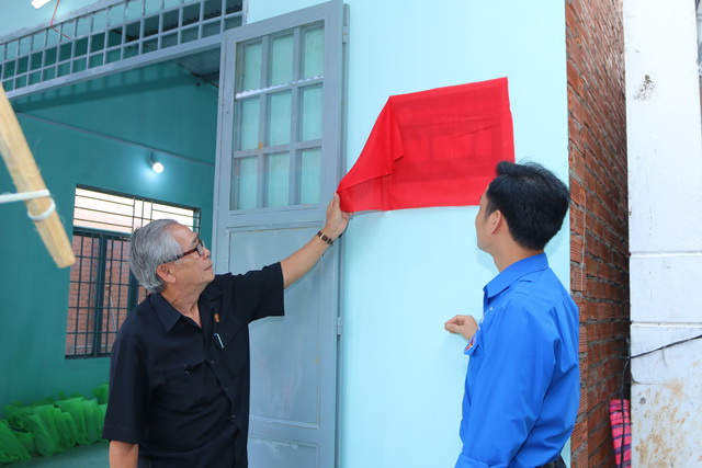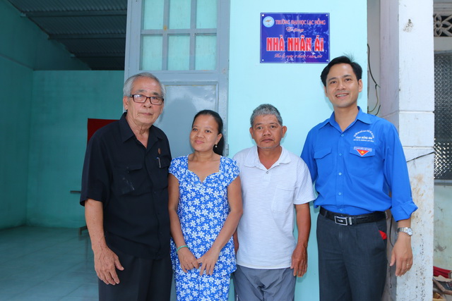 Hình 2: Đại diện nhà trường, các đoàn thể, lãnh đạo địa phương trao nhà cho chủ sở hữu