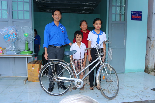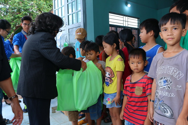 Hình 4: Đại diện Hội khuyến học tỉnh Đồng Nai tặng quà cho các em học sinh có hoàn cảnh khó khăn