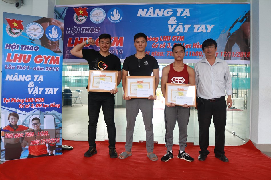 Trải qua những phần thi gay cấn, bạn Nguyễn Quốc Triệu – khoa Công nghệ thông tin đã trở thành nhà vô địch toàn năng sau khi giành chức vô địch hạng cân dưới 65kg. PT Trần Vũ Nghĩa chia sẻ: “ Vì đây là lần đầu tiên LHU GYM tổ chức hội thao, vật tay và nâng tạ không phải là bộ môn thể thao lạ lẫm đối với các bạn sinh viên nhưng không phải ai cũng nắm được kỹ thuật và luật thi đấu. Hội thao được tổ chức với mong muốn tạo sân chơi lành mạnh cho các bạn sinh viên, khuyến khích mọi người rèn luyện sức khỏe và tạo không gian cho các bạn sinh viên gặp gỡ, giao lưu cũng là xả stress sau những giờ học ở trường”.