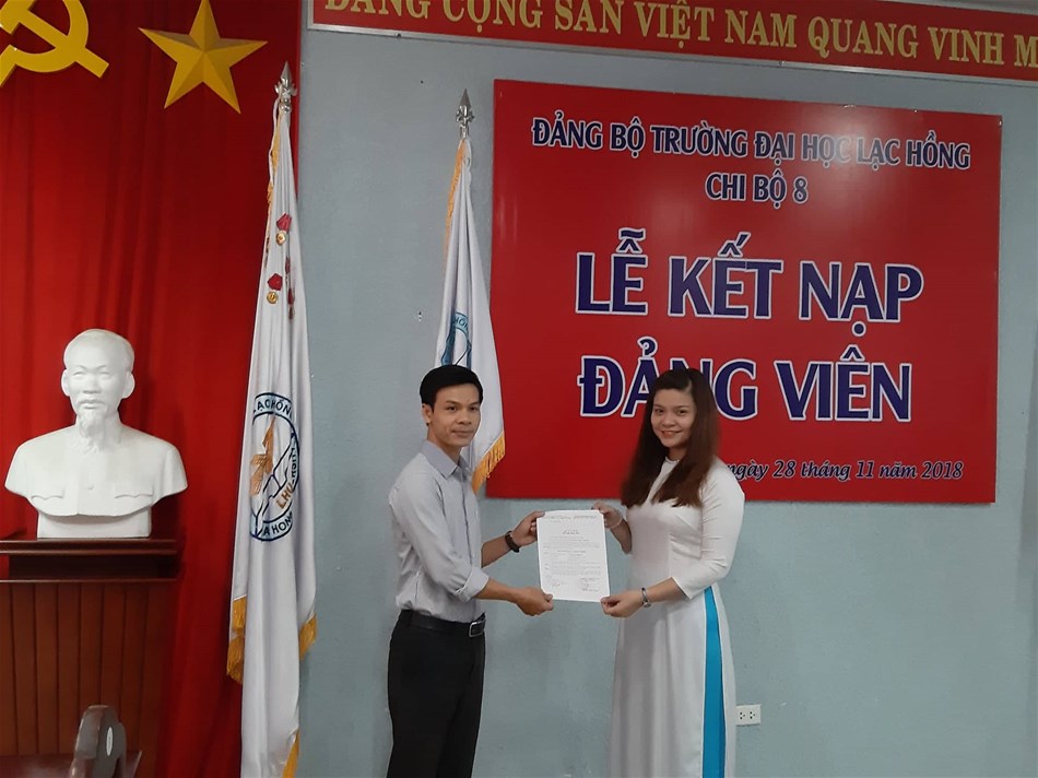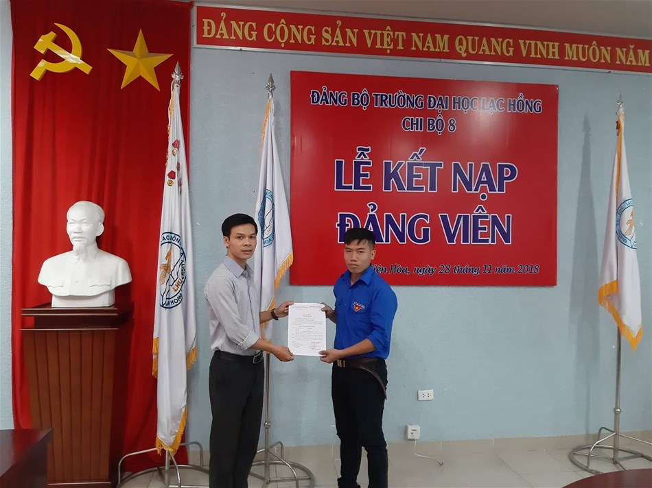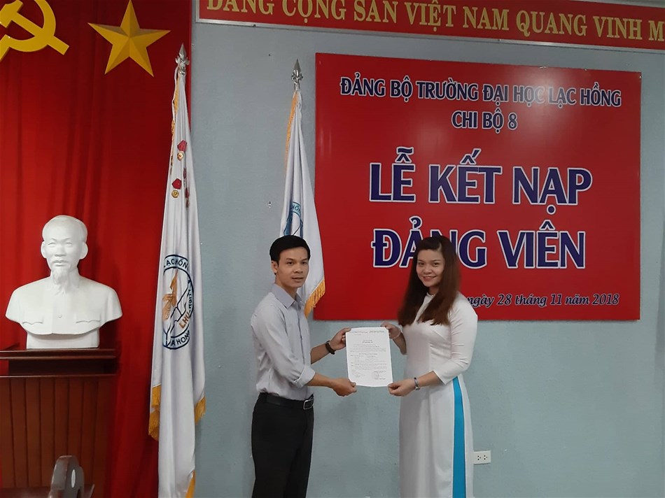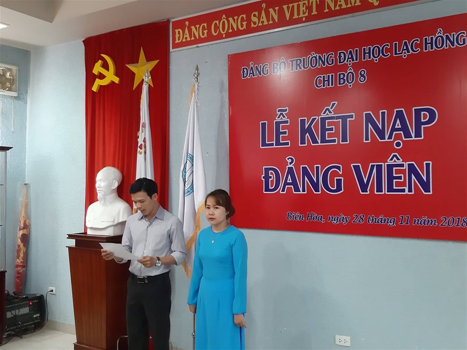 Được sự đồng ý của Đảng ủy khối các cơ quan tỉnh Đồng Nai, Ban Thường vụ Đảng ủy trường; ngày 28/11/2018, tại văn phòng họp cơ sở 1, trường Đại học Lạc Hồng. Chi bộ 8 đã tổ chức Lễ kết nạp đảng viên cho 3 quần chúng vào Đảng Cộng sản Việt Nam, đến dự buổi lễ kết nạp có Đ/c Lê Sơn Quang – UV.BTV Đảng ủy trường, Đ/c Trần Tiến – Bí thư Chi bộ 8 cùng sự có mặt của toàn thể đảng viên trong Chi bộ 8.