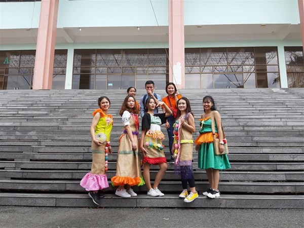 Hình 2: Đội hình thi thời trang "Bảo vệ môi trường" của sinh viên LHU