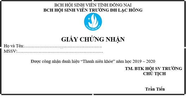 Giấy chứng nhận "Thanh niên khỏe" năm học 2019 - 2020