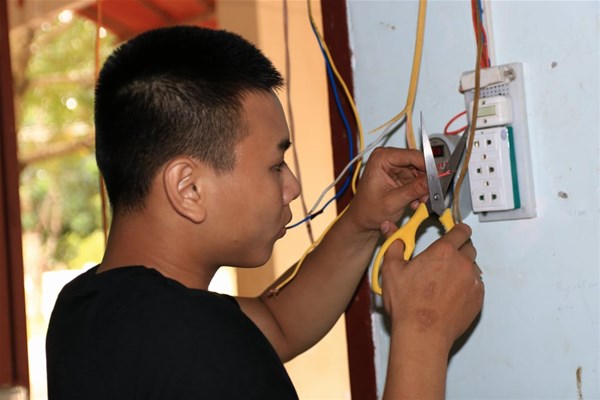 Những ông "thợ" sinh viên nối dây, nối điện, thao tác cho máy hoạt động...