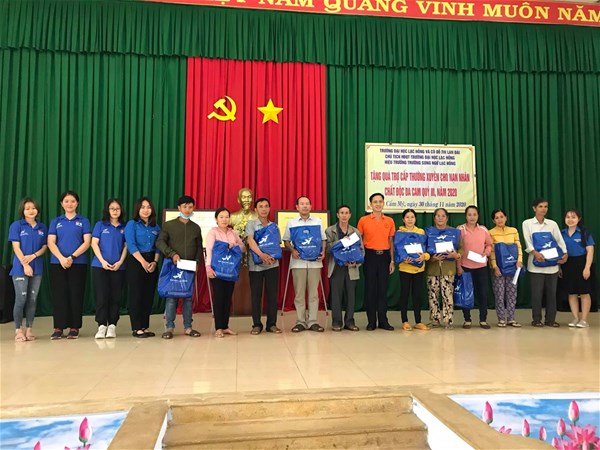 ĐH Lạc Hồng tặng quà cho nạn nhân da cam tại huyện Cẩm Mỹ và huyện Xuân Lộc