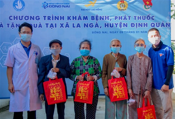 Ngày 09/01/2021, Đoàn Thanh niên – Hội Sinh viên, khoa Dược trường ĐH Lạc Hồng phối hợp với đoàn viên thanh niên Bệnh viện đa khoa tỉnh Đồng Nai tổ chức chương trình khám bệnh, phát thuốc miễn phí cho gần 200 hộ gia đình có hoàn cảnh khó khăn hiện đang sinh sống tại ấp 5, xã La Ngà, huyện Định Quán, tỉnh Đồng Nai.