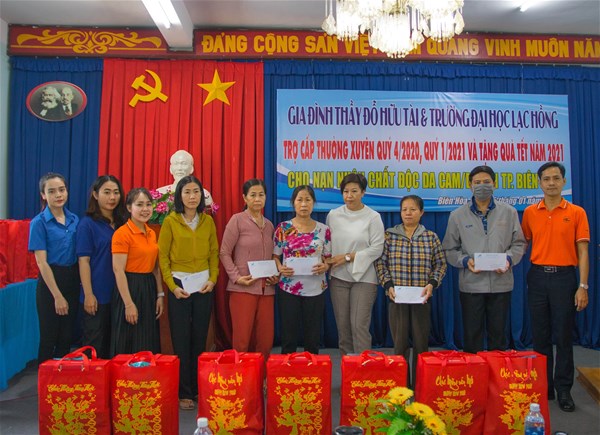 Trường Đại Học Lạc Hồng và Gia đình Thầy Đỗ Hữu Tài hỗ trợ, trợ cấp thường xuyên cho 90 nạn nhân chất độc da cam trên địa bàn tỉnh Đồng Nai. Số tiền trợ cấp hàng tháng là 400.000đ/01 nạn nhân, đây là mức tiền trợ cấp thường xuyên hàng tháng cao nhất cho nạn nhân chất độc da cam trên địa bàn tỉnh Đồng Nai.