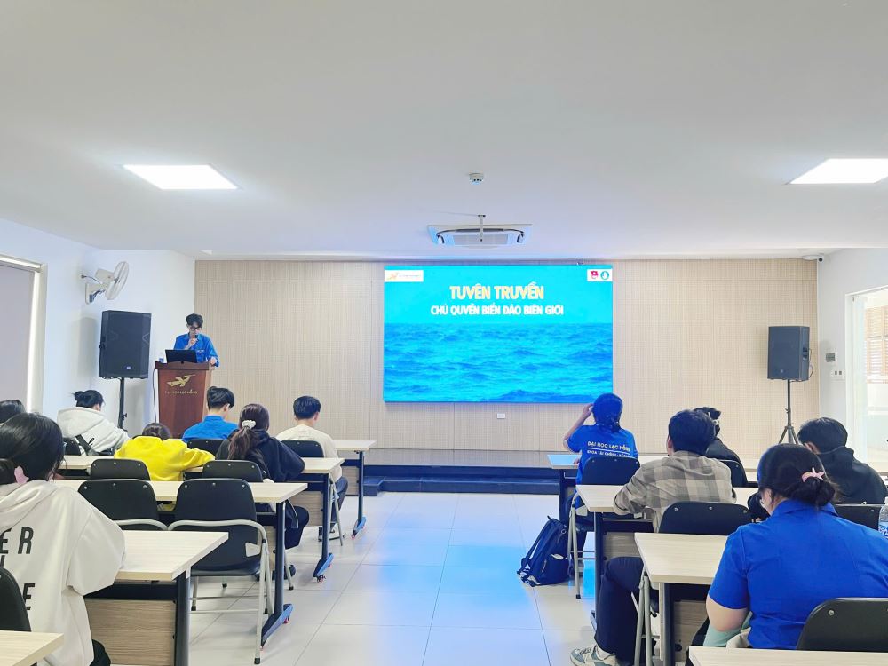 Thực hiện chương trình công tác Đoàn và phong trào thanh niên năm học 2024–2025, nhằm nâng cao nhận thức cho đoàn viên, sinh viên về vị trí, vai trò chiến lược của biển, đảo, biên giới trong sự nghiệp xây dựng và bảo vệ Tổ quốc, ngày 16 tháng 4 năm 2025, Ban Thường vụ Đoàn Trường Đại học Lạc Hồng đã tổ chức buổi tuyên truyền về chủ quyền biển đảo biên giới cho đoàn viên, sinh viên các khoa.
