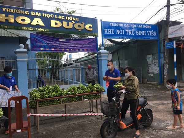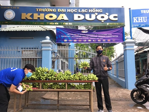Sáng 22/7/2021, Đoàn Thanh niên – Hội Sinh viên trường đã tổ chức tao tặng 30 buồng chuối, ước tính khoảng 450kg tại khu vực trước cổng khoa Dược, trường Đại học Lạc Hồng.