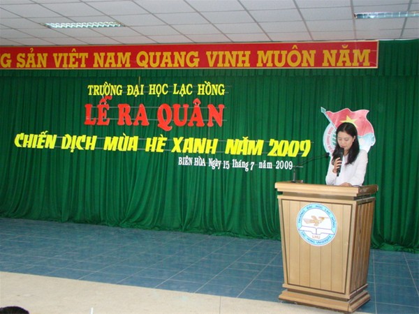 Tham dự lễ ra quân có thầy TS Trần Hành – ĐUV, Hiệu trưởng nhà trường, thầy Th.S Diệp Cẩm Thu – Phó hiệu trưởng nhà trường; về phía Tỉnh Đoàn Đồng Nai có Đ/c Lê Thị Ngọc Loan – P. Bí thư tỉnh đoàn Đồng Nai; về phía Đoàn trường có Th.S Nguyễn Hồ Xuân Hương – UVTV đảng ủy trường, Bí thư Đoàn trường; Đ/c Lê Sơn Quang – P. Bí thư Đoàn trường; Đ/c Trần Tiến – P. Bí thư Đoàn trường cùng với đại diện thường vụ huyện Đoàn Vĩnh Cửu và 100 bạn sinh viên tình nguyện mùa hè xanh 2009 của trường ĐH Lạc Hồng.